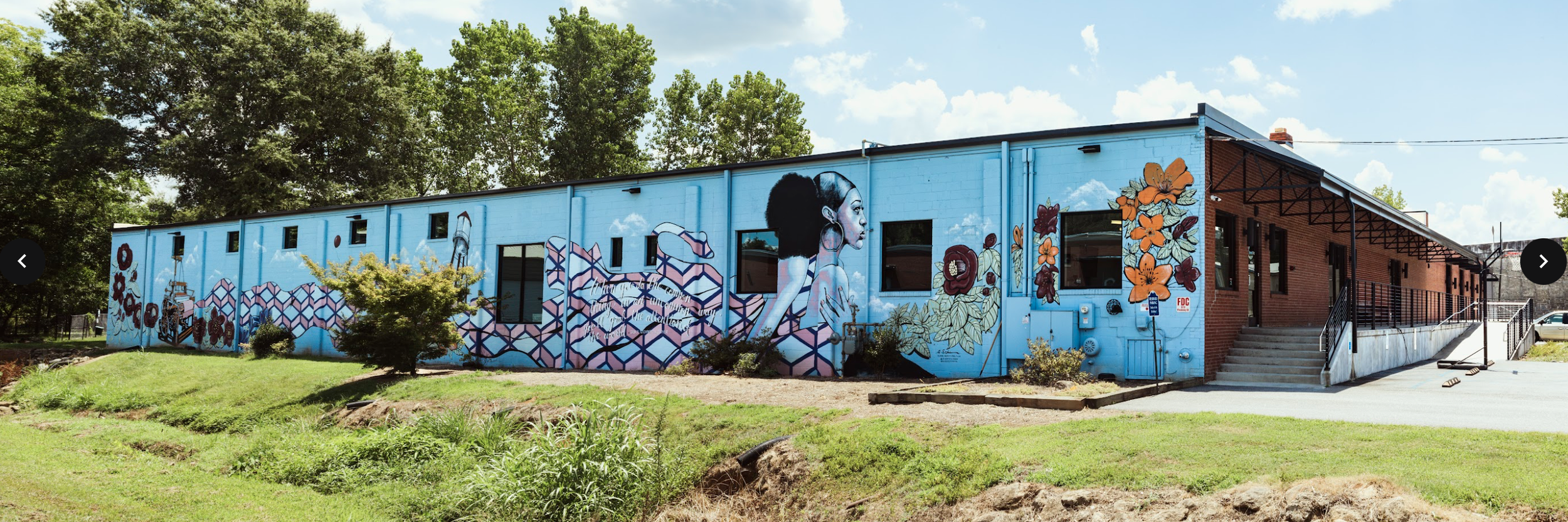 One thing we are not lacking in Poe Mill is murals. Right around Griggs Church, there are several murals thanks to artist Adam Schrimmer, a local legend and lead artist of Blank Canvas Mural Company.